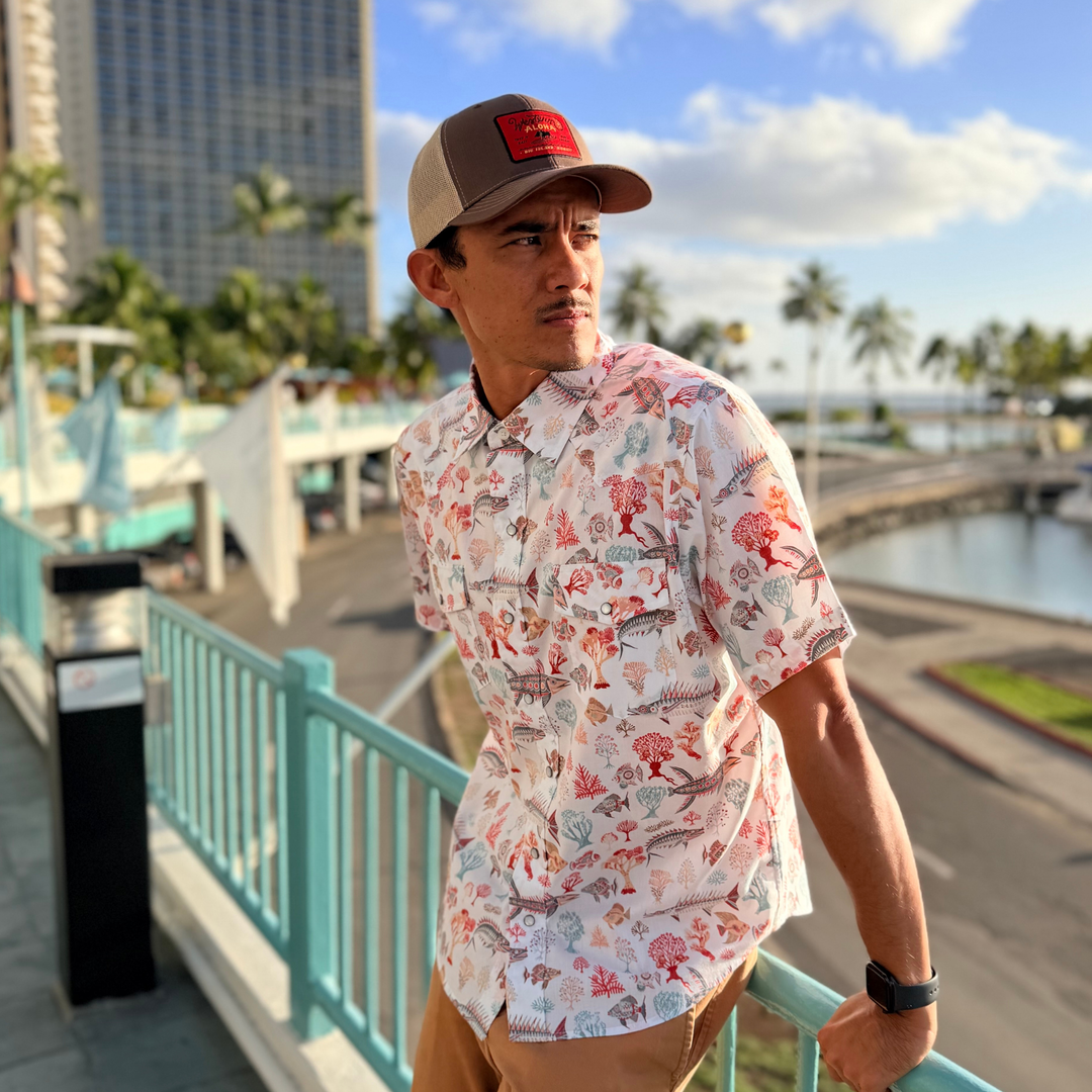 Men's Short Sleeve Pohuehue Pareu Pink Shirt